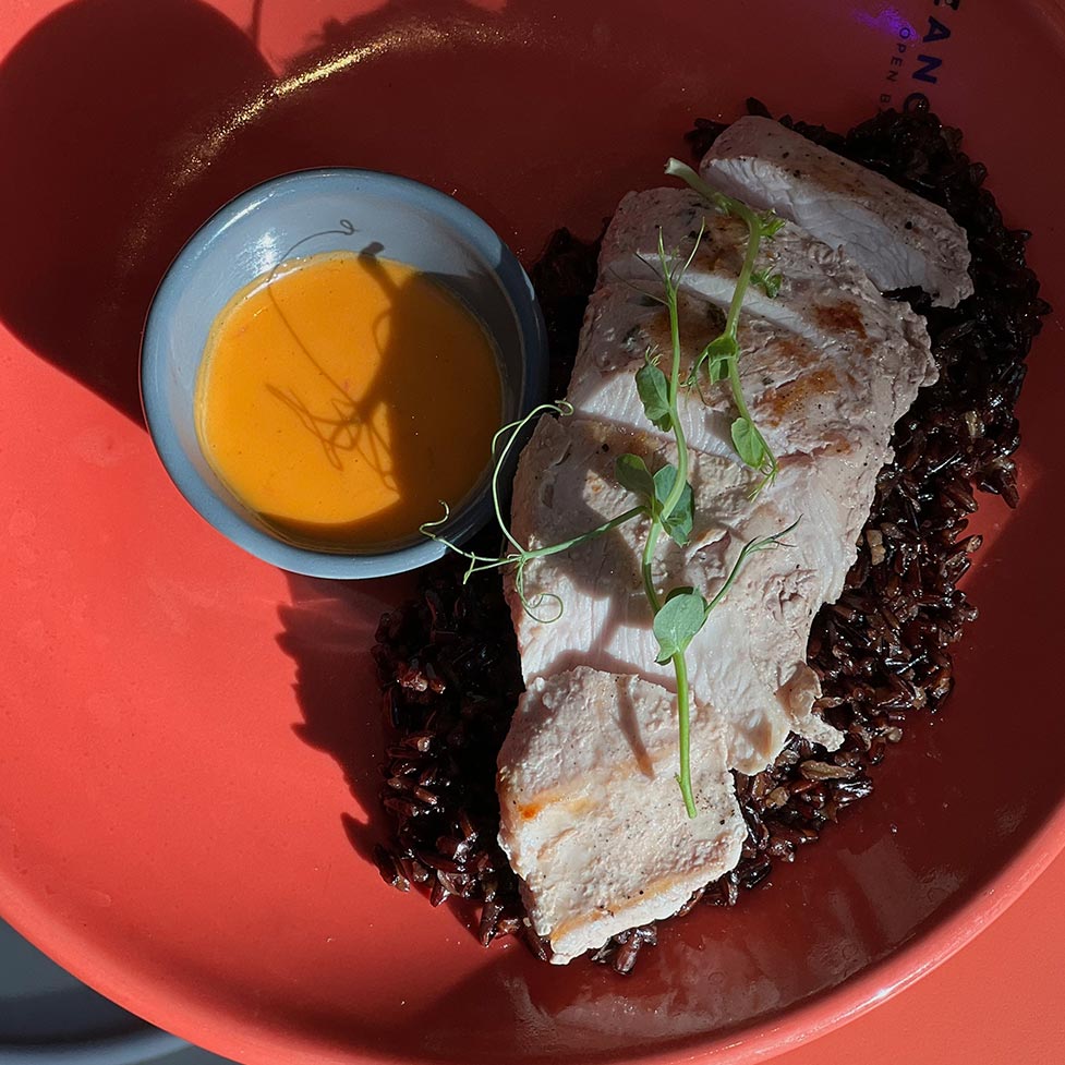 стейк из индейки с рисом nero и имбирным соусом